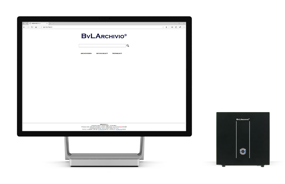 BvLArchivio ist eine zertifizierte und gesetzeskonforme Komplettlösung. Die mitgelieferte und bereits vollständig installierte Server-Hardware erspart aufwendige Installationsarbeiten in der IT-Abteilung. Mit dem System BvLArchivio kann sofort gestartet werden.
