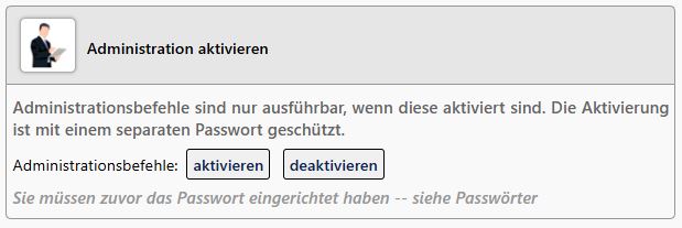- Sie sind im Administrationsbereich "Administration aktivieren / deaktivieren". Klicken Sie auf "aktivieren".
