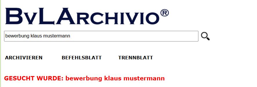 2. Geben Sie jetzt den Löschbefehl mit den Suchbegriffen direkt in der URL ein. Klicken Sie auf unser Beispiel und tauschen Sie die IP-Adresse und Suchbegriffe gegen Ihre Suchbegriffe aus. In unserem Beispiel hier wird im Archiv1 mit den Suchbegriffen "Bewerbung", "Klaus" und "Mustermann" die Löschliste erstellt. Entfernen Sie die Parameter "&BvL2=Klaus" oder "&BvL3=Mustermann", wenn diese nicht relevant sind.