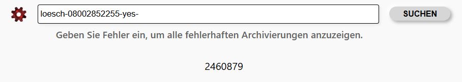 1. Geben Sie in der Suchzeile in einem Archiv zuerst die Suchbegriffe der zu löschenden Dateien ein. Kontrollieren Sie, ob die angezeigten Dateien zu der Gruppe der zu löschenden Dateien gehören. Haben Sie die Dateien mit einem Lösch-Hashwert archiviert, können Sie die Dateien auch mit diesem Hashwert abfragen. Sie können aber auch gezielt Dateien abfragen, die keinen Lösch-Hashwert zum Zeitpunkt der Archivierung hatten.