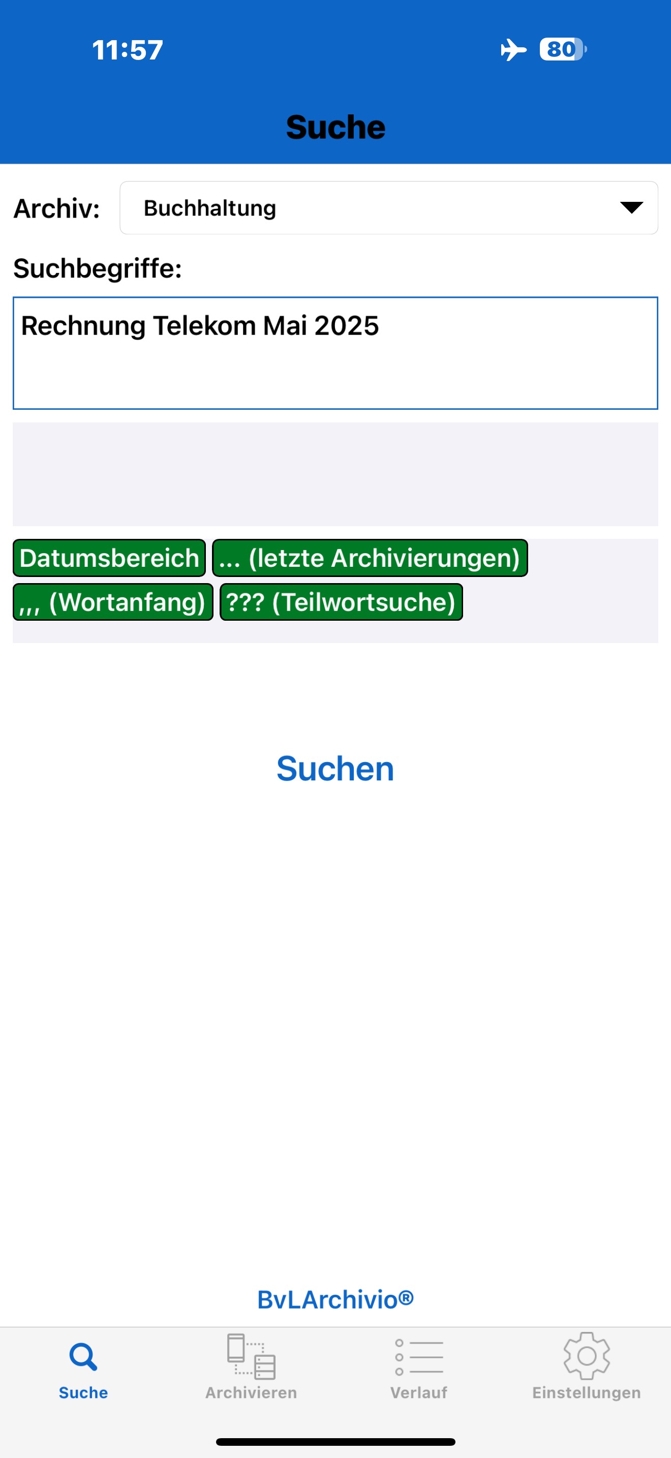 2. Tragen Sie Ihre Suchanfrage ein, z. B. Rechnungsnummer oder Ordnernamen