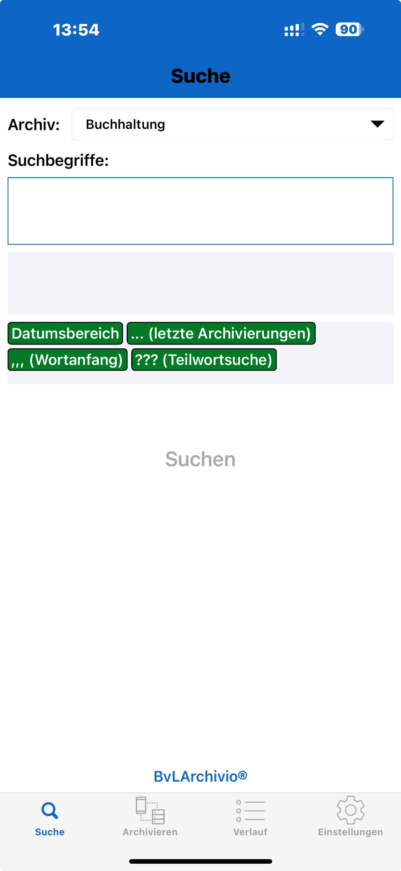 Laden Sie sich die BvLArchivo App aus dem Store herunter. Für das Hochladen oder Suchen müssen Sie einmalig die BvLArchivio mobil APP einrichten.