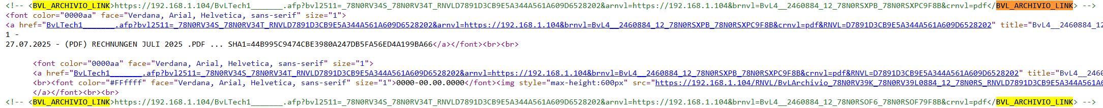 3. Zwischen den TAGS <BVL_ARCHIVIO_LINK> und </BVL_ARCHIVIO_LINK>) stehen jeweils die direkten Links zur Datei. Mit Aufruf dieses temporären Links wird die Datei sofort heruntergeladen.