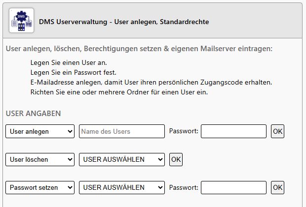 - Klicken Sie unten rechts auf "DMS Userverwaltung - User anlegen, Standardrechte".