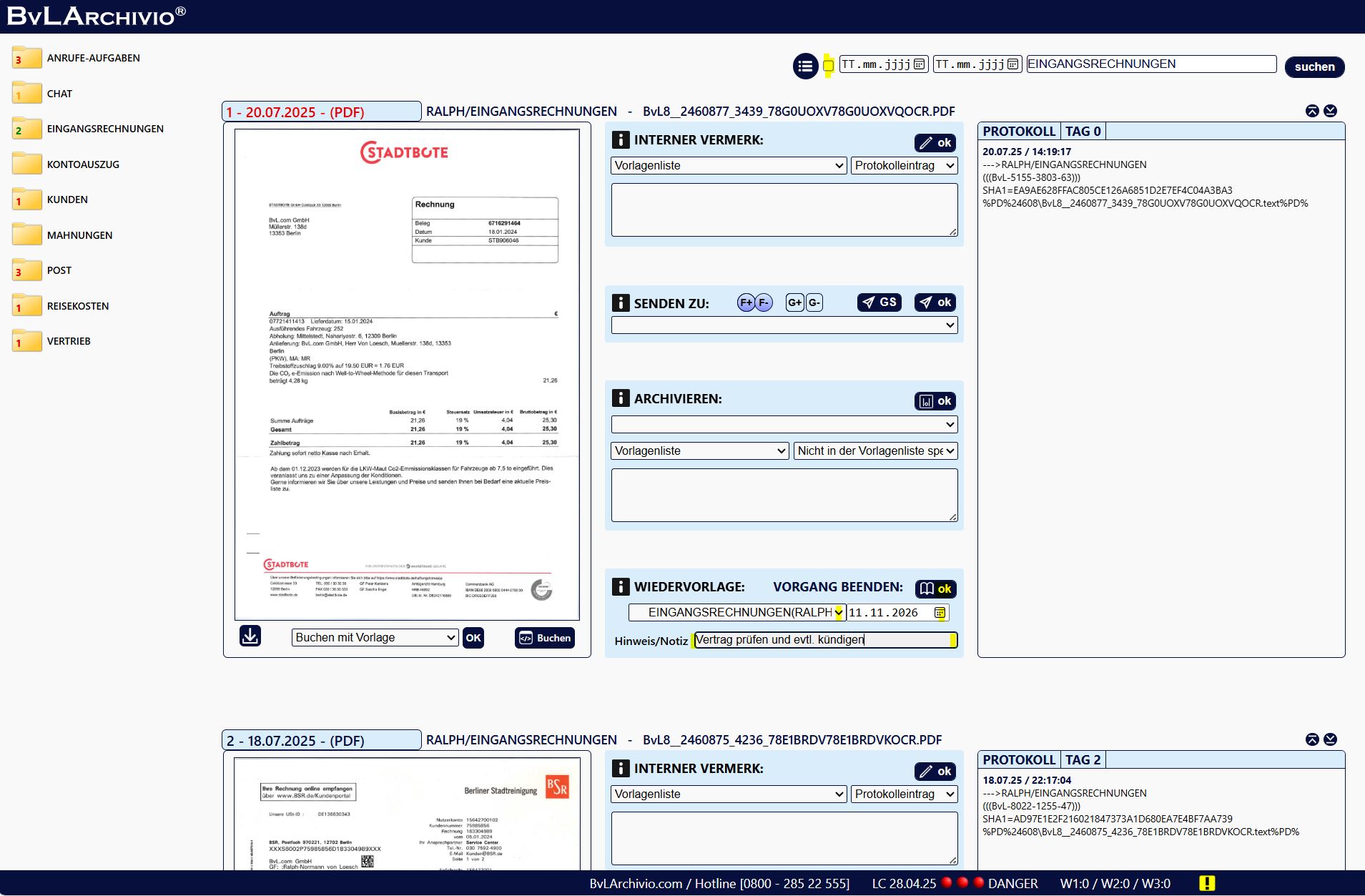 Ein Vorgang wird solange angezeigt, bis dieser von Ihnen beendet wird. In der Liste werden offene Vorgänge angezeigt. Möchten Sie auch erledigte Vorgänge sehen, setzen Sie neben den Datumsfeldern den Haken.