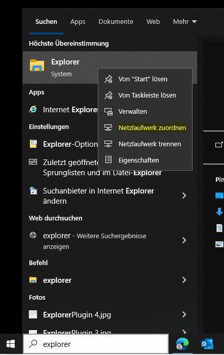 3. Wählen Sie "Netzlaufwerk zuordnen" aus.