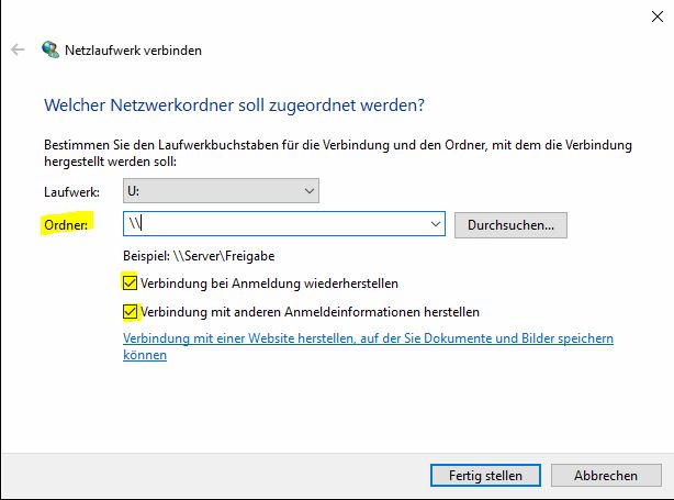 Netzlaufwerk einbinden:
