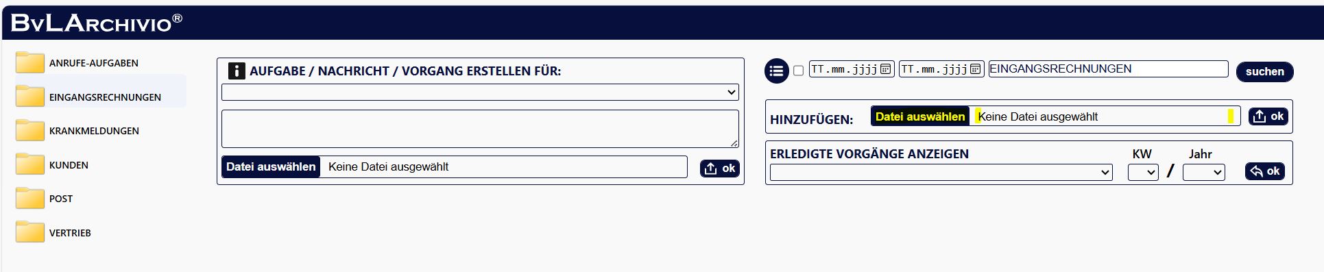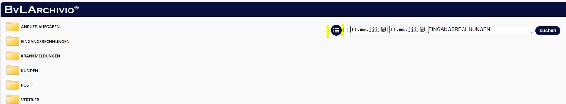 1.) Entscheiden Sie, in welchen Ihrer Ordner ein Vorgang hinzugefügt werden soll. Klicken Sie dazu auf den entsprechenden Ordner.