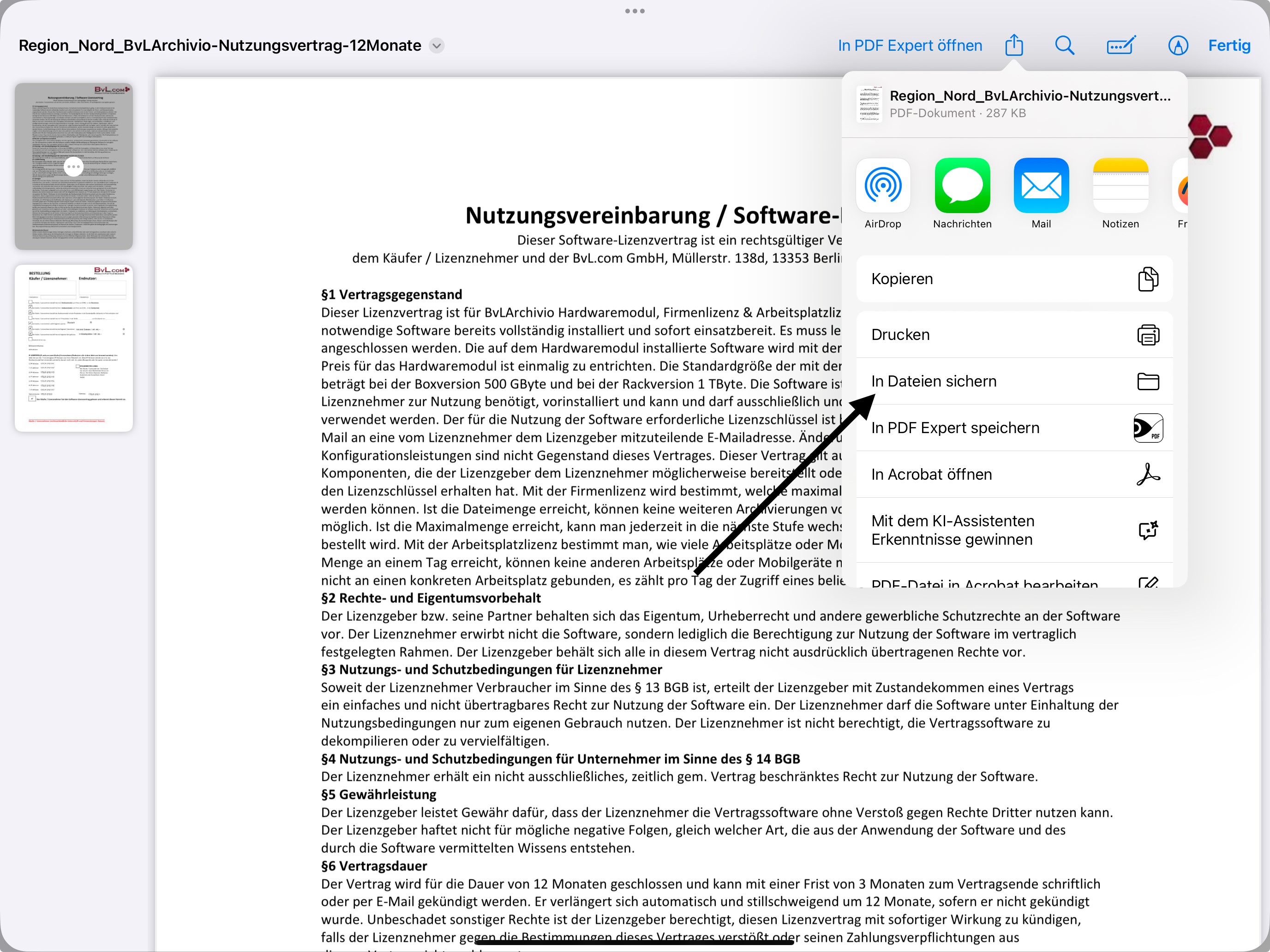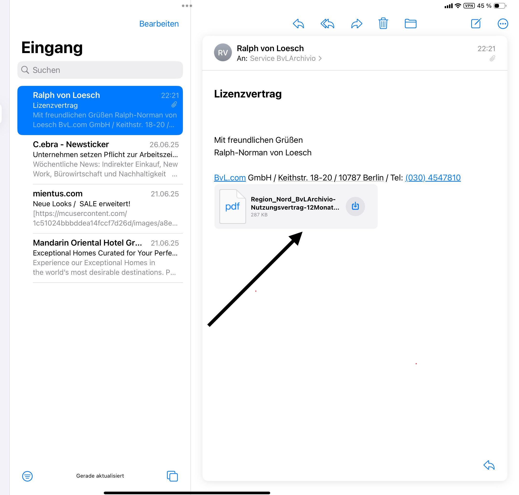 1. Öffnen Sie die gewünschte Datei, z. B. die Anlage in einer E-Mail.