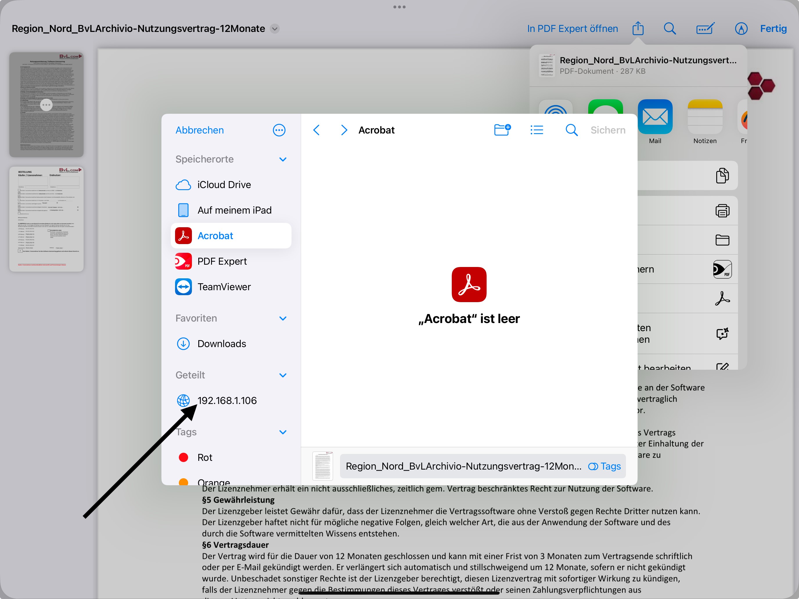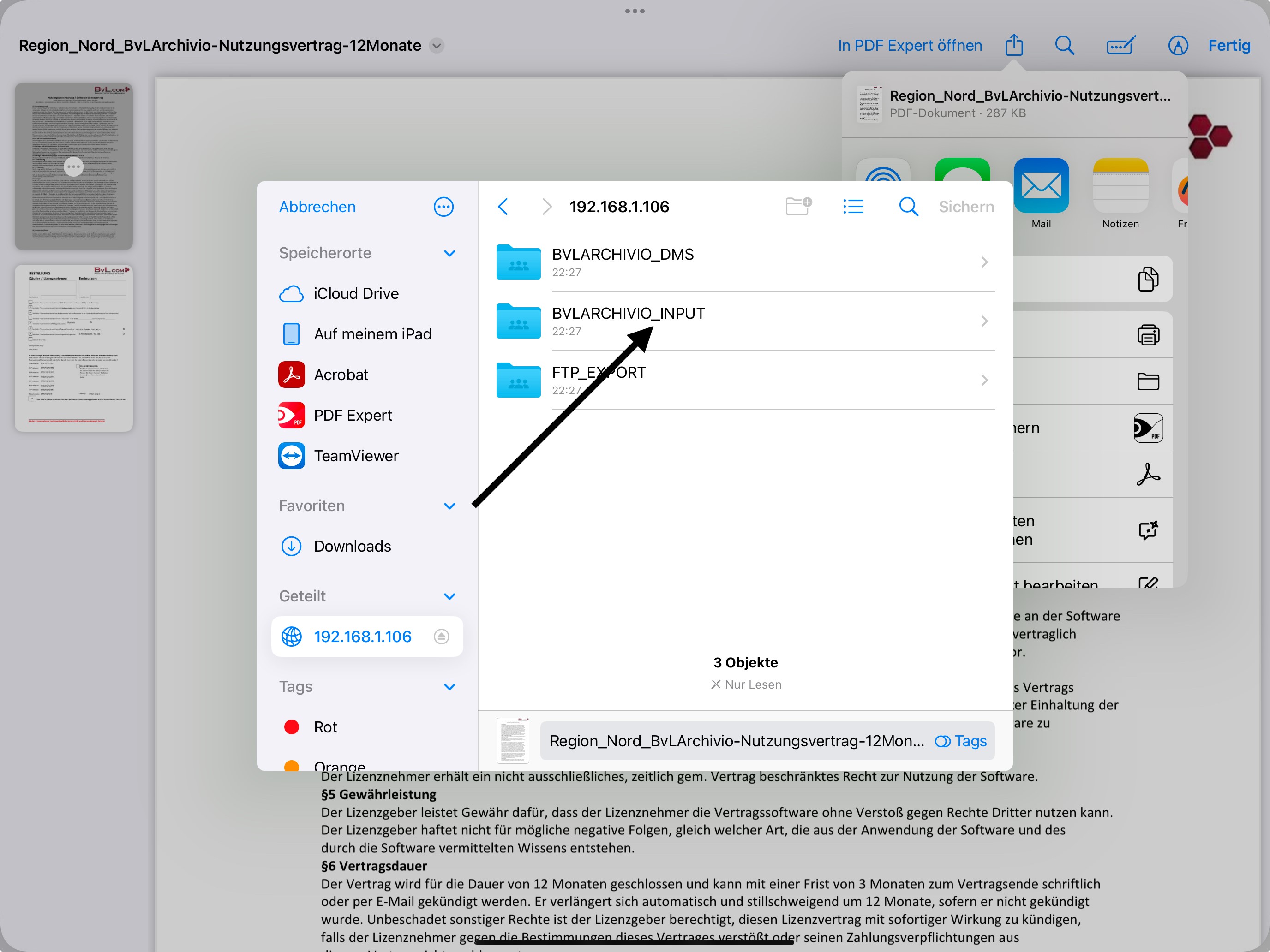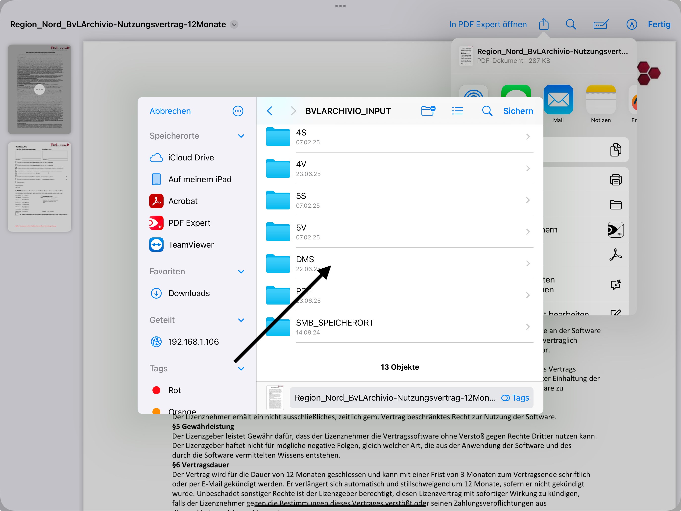 Nachdem Sie das SMB-Laufwerk an Ihrem iPhone oder iPad eingerichtet haben (SMB-Laufwerk einrichten am iPhone/iPAD), können Sie jede beliebige Datei direkt in den Ordner eines Users kopieren.