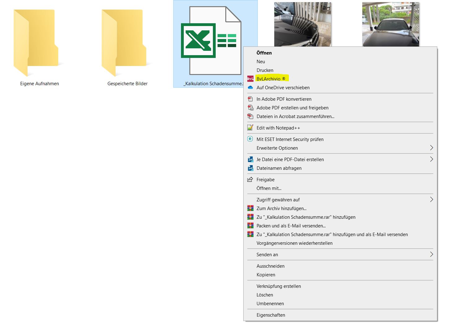 1.) Klicken Sie mit der rechten Maustaste auf die entsprechende Datei. Klicken Sie auf die Zeile BvLArchivio.