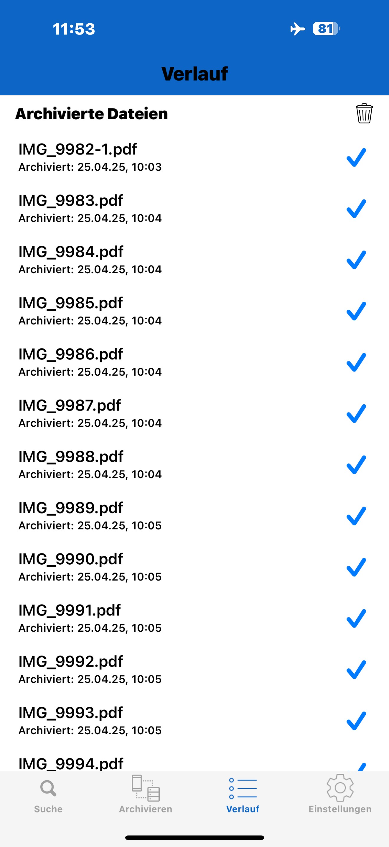 4. Datei: Die zu archivierenden Dateien werden mit dem Dateinamen angezeigt